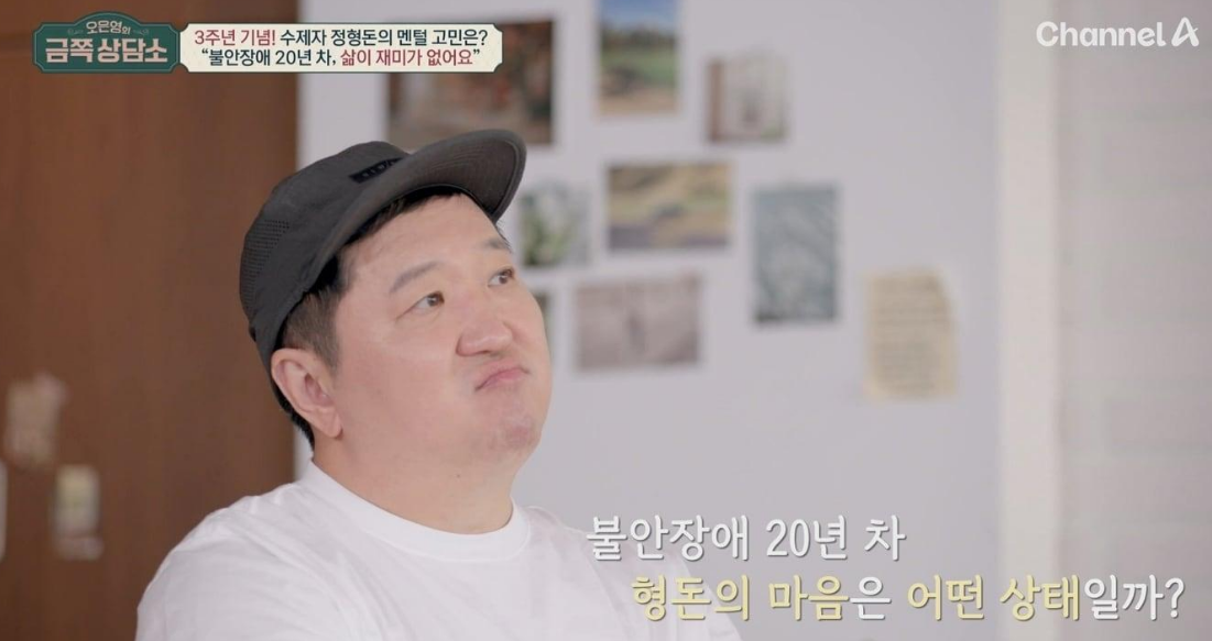 그러자 금쪽 상담소 MC이자 박성광의 절친인 정형돈도 "20년째 불안장애를 겪고있다. 결혼후 쌍둥이 딸들이 태어나고, 두 딸들을 위해 좋은건 다해 주겠다는 마음으로, 3개월 동안 106개의 녹화를 뜨고, 고작 이틀을 쉬었다, 일만하다 탈이났다"